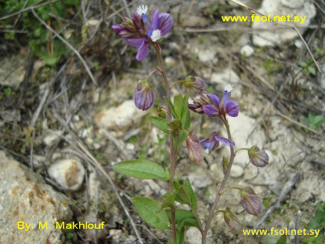 نبات عشبي معمر، ذو قاعدة متخشبة، مفترش، متفرع من القاعدة، أملس. الأوراق بسيطة متبادلة، بيضاوية- متطاولة، 0,5 – 1,5 سم، حوافها تامة. النورة راسيمية أوعنقودية، طرفية وأحياناً جابنية، القنابات شريطة مدببة، طولها 1 مم. الأزهار معنقة. السبلات 5، بنفسجية، ذات عروق داكنة، الخارجية 3، طولها 3 مم، الداخلية 2، طولها 8 مم، بيضاوية- متطاولة. التويج أقصر من السبلات الداخلية، بنفسجي فاتح، عليه زوائد من الخلف، متفرعة، بيضاء. الأسدية 8 ملتحمة عند المنتصف. المبيض بيضاوي متطاول، ثنائي الكرابل عديدة البذور. الثمار غير ناضجة