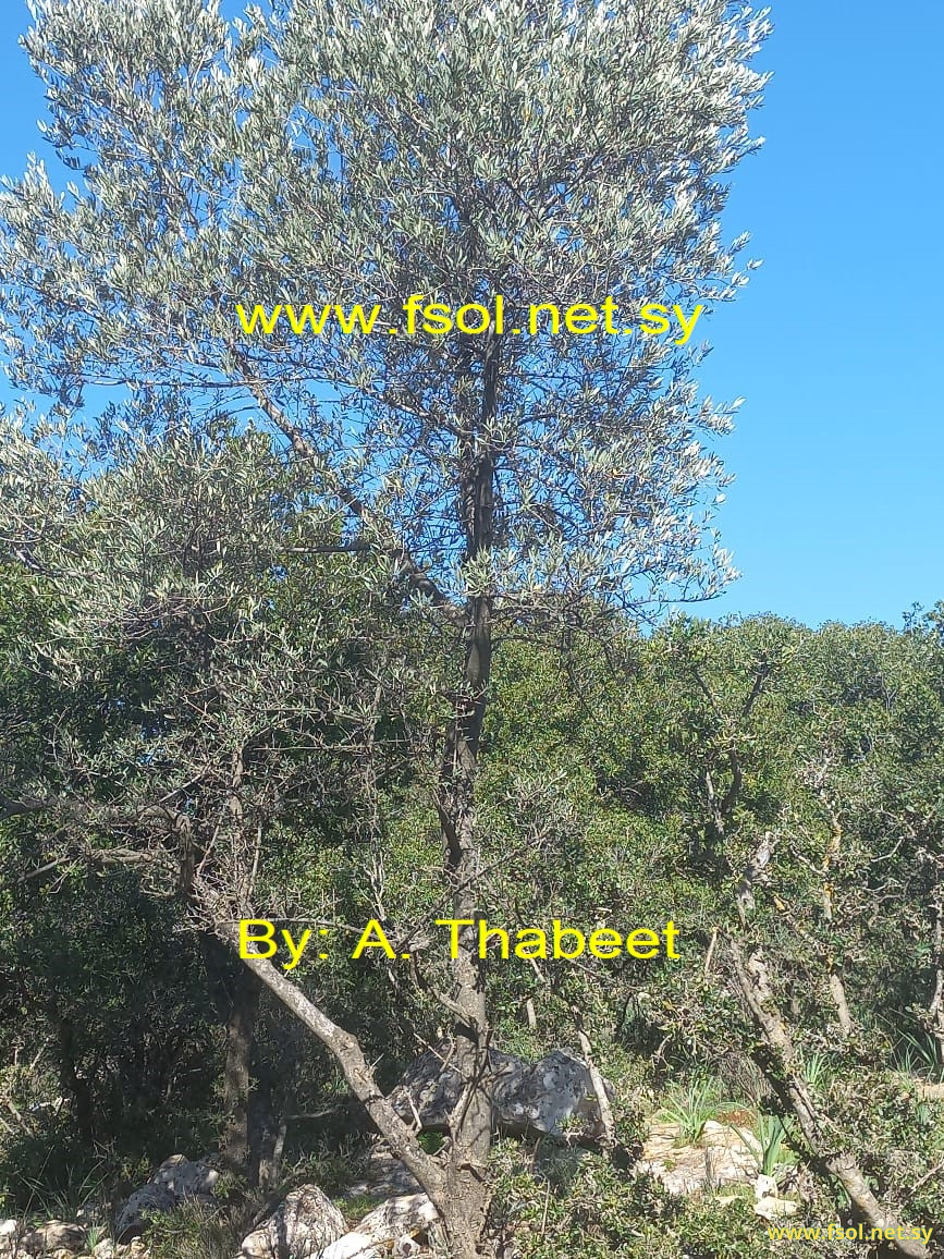 شجرة دائمة الخضرة, ذات لحاء متشقق. , دائمة الخضرة. رمحية متطاولة, كاملة الحافة, ملتفة عند الأطراف, مستدقة القمة, خضراء غامقة على سطحها العلوي, فضية على سطحها السفلي. الأزهار تتوضع في نورة عنقودية إبطية. الثمرة حسلية لحمية, بيضوية متطاولة, خضراء ثم سوداء عن النضج.. الأزهار بيضاء متجمعة, الكأس رباعي الأسنان. الثمرة لحمية خضراء تصبح مسودة عند النضج, النواة قاسية. ينمو بشكل طبيعي في غابات وماكي المتوسط, غير متحمل للصقيع, يستخدم كأصل وراثي ويتميز عن الأصناف المزروعة بثماره الصغيرة, والتفرع المتعدد للساق. من النباتات المهددة بالانقراض. من وجهة نظر بيومناخية يصادف الزيتون البري في الطوابق الجافة العلوية حتى شبه الرطبة بالمتغيرات الحارة والمعتدلة. يتحمل مختلف أنواع الأراضي عدا الغدية والملحية, أي أنه لا يتحمل الجفاف الشديد ولا الرطوبة الشديدة. من وجهة نظر تطبق نبتي فهو عنصر أساسي من عناصر الطابق المتوسطي الحراري.